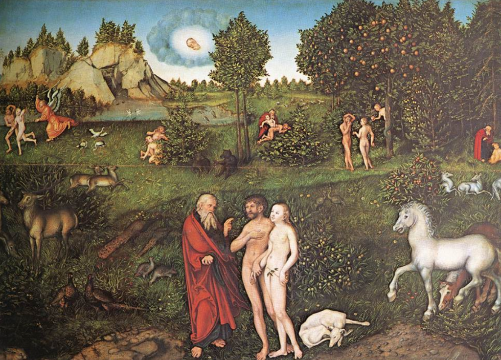 God (all part of the plan, if you think about it) “spotted” naughty Adam and Eve chomping away, cheeks crammed and chins stained, as of course He would because He’s God after all. The story goes: “And the Lord God said, ‘Behold, the man is become as one of us, to know good and evil!’”